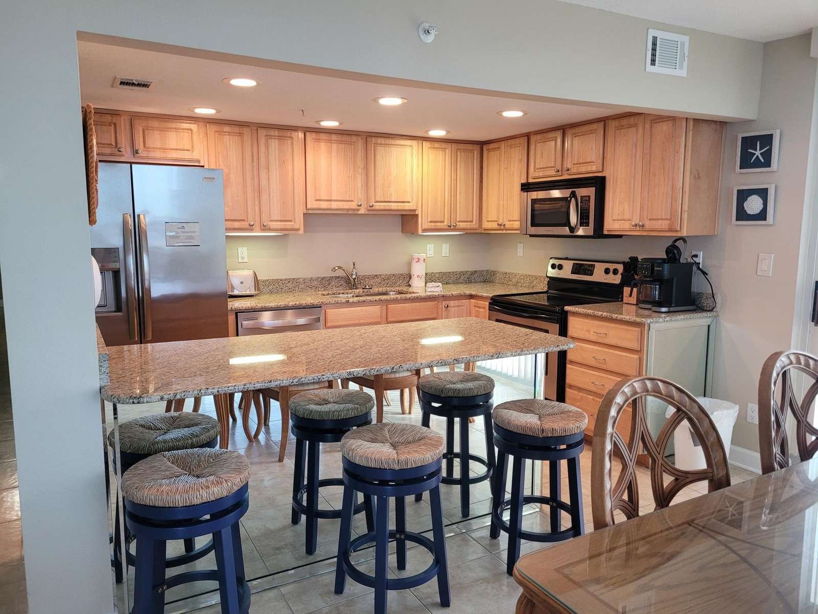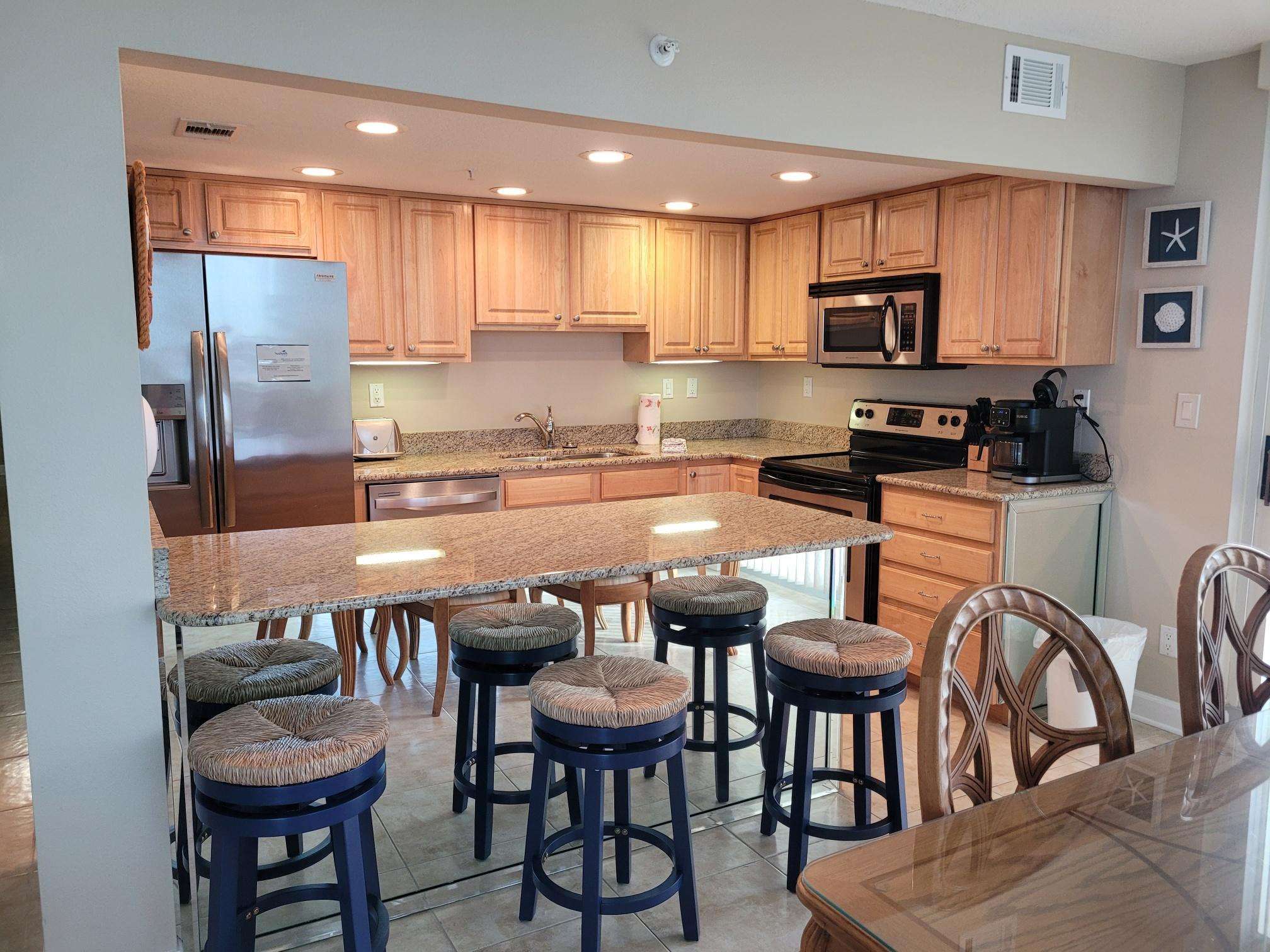 This amazing 3-bedroom, 3-bath corner unit on the Riverside gives way to absolutely beautiful views of Ole River! This condo has plenty of room for your family and friends to enjoy a wonderful vacation at the beach. The living room is very roomy and will seat all your loved ones comfortably. The dining room has a beautiful dining table and a view of the Gulf from the east sliding door. The kitchen is very well supplied with everything the chef in the family will need. For all you coffee lovers, this unit offers both a Keurig and a drip coffee maker. There are 3 bedrooms, with a cozy king bed in the master and a King bed in the guest bedroom, both with en suite bathrooms. The third bedroom has a lovely view of Ole River and has access to the hall bathroom. Having three bathrooms assures that everyone has enough space and privacy during their stay. The view from the balcony overlooks the refreshing pool, marina, and BBQ area, so be sure to get ready to grill your fresh catch! Perdido Key's sunsets are breathtaking! This condo will become your favorite retreat year after year! SeaSpray also boasts 3 pools, a hot tub, a well-equipped beachfront fitness center, a BBQ area, a marina and boat launch, tennis/pickleball courts, and almost 300 feet of pristine beach on the Gulf of America! Come spend your vacation with us! You will leave refreshed and relaxed!