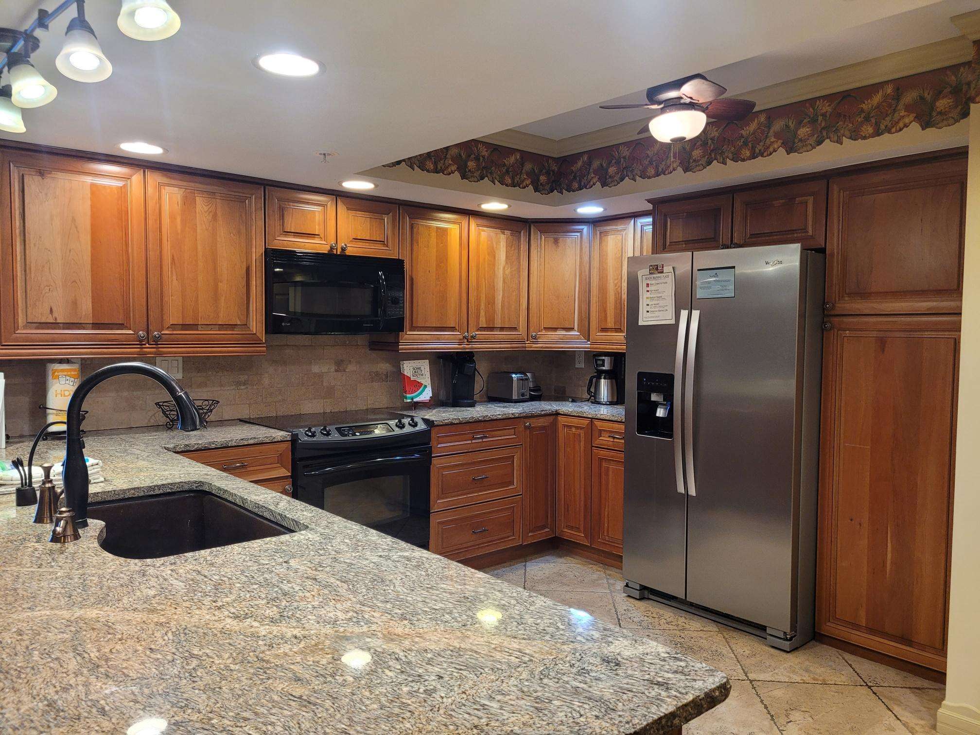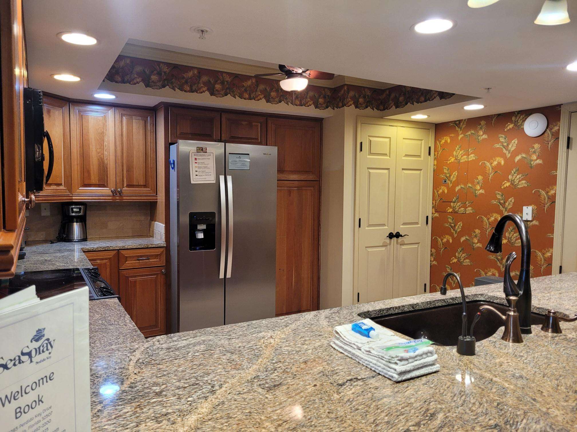 This beautiful 3 bedroom 2 bath all tile condo sleeps 7! It has a comfy king sized bed in the master bedroom, an equally comfy queen bed in the second bedroom, and a full/twin bunk bed in the third bedroom. The living room sofa has built in recliners so you can kick back and watch the waves right from the living area. There is a fully equipped kitchen with all the comforts of home and more. What a great way to start the day; with a cup of coffee, or a nice mimosa, while watching the sun set or rise! Also, enjoy all the amenities that SeaSpray has to offer, including 3 pools, a hot tub, marina with boat slip, well equipped beach front fitness center and newly resurfaced tennis/pickleball courts. You'll be sure to make great memories with family and friends in this amazing getaway! It's comfortable, roomy and will leave you smiling and booking again before you leave for next year!