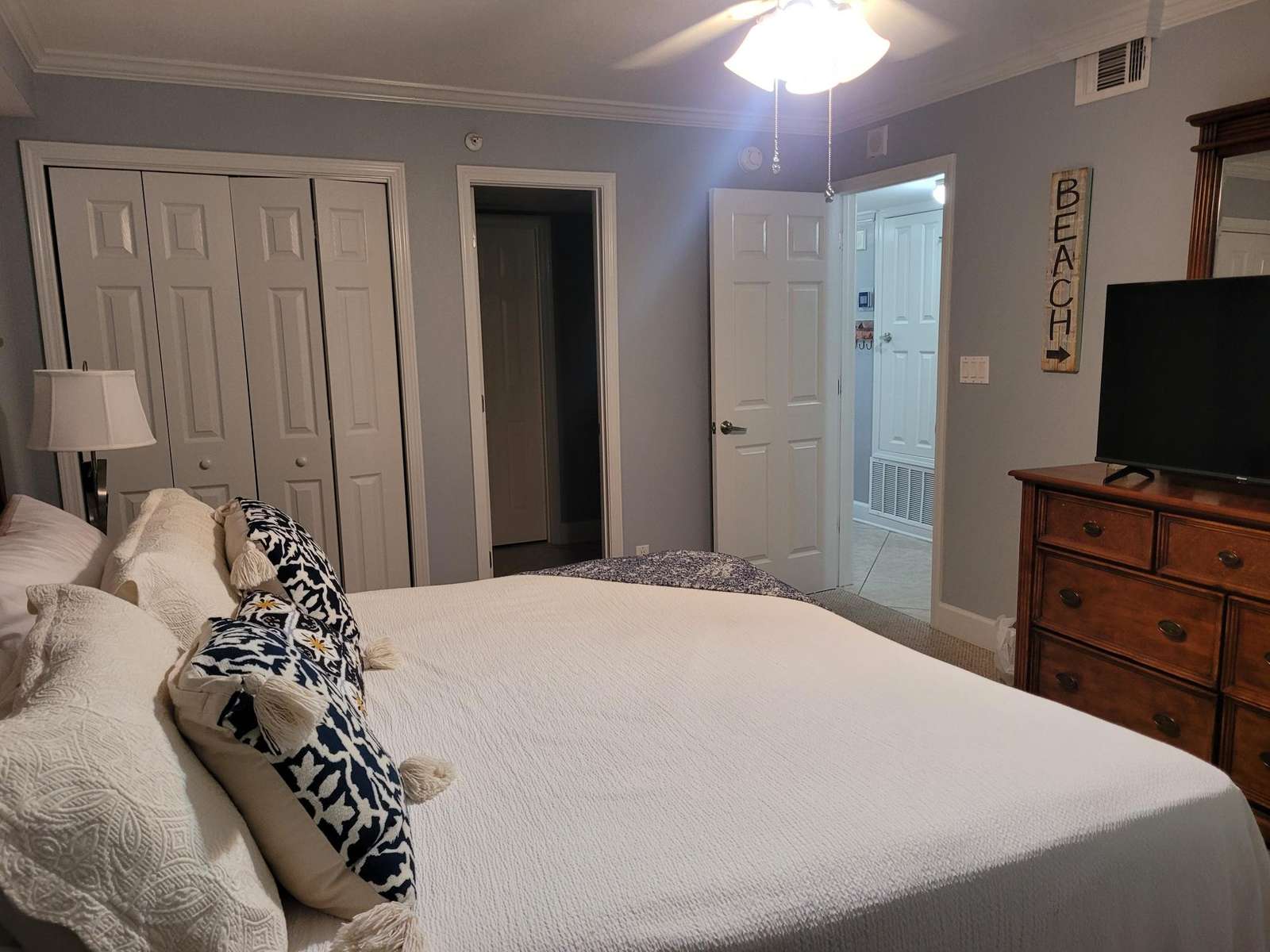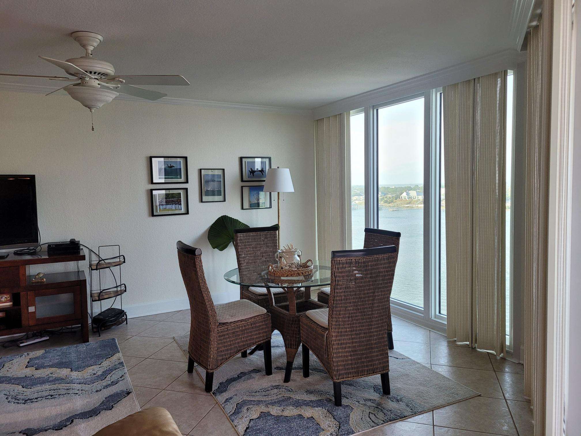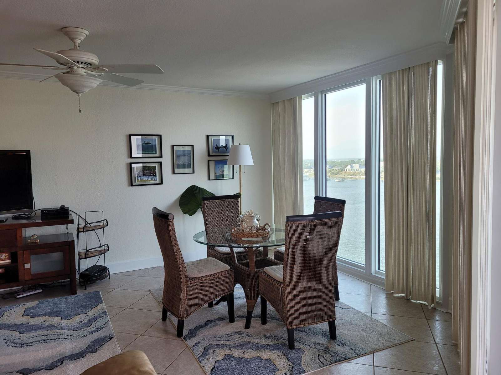 This adorable 2-bedroom 2 bath vacation rental located in the Riverside building. The primary bedroom hosts a king bed and ensuite bath with double vanity and walk in shower while the second bedroom offers a Queen bed with a full bath conveniently located in the hallway. The living room consists of a sleeper sofa and matching loveseat. The large dining room offers plenty of space for family gatherings and offers additional breakfast bar seating. The fully equipped kitchen offers a drip coffee maker, stainless steel appliances and granite counter tops. Family game night? This unit comes with an additional round glass table/chairs, just perfect for cards and board games. Relax with a cocktail while taking in the views of the "Ole River". SeaSpray has 3 refreshing pools, hot tub, kayak rack, lighted tennis/pickleball courts, propane grill house and private boat launch. Need to keep you work out routine on schedule, with traffic-controlled pedestrian walkway, it's just a quick walk across the street to our fully equipped fitness center or spend the day on Perdido Kye's pristine white beaches.
