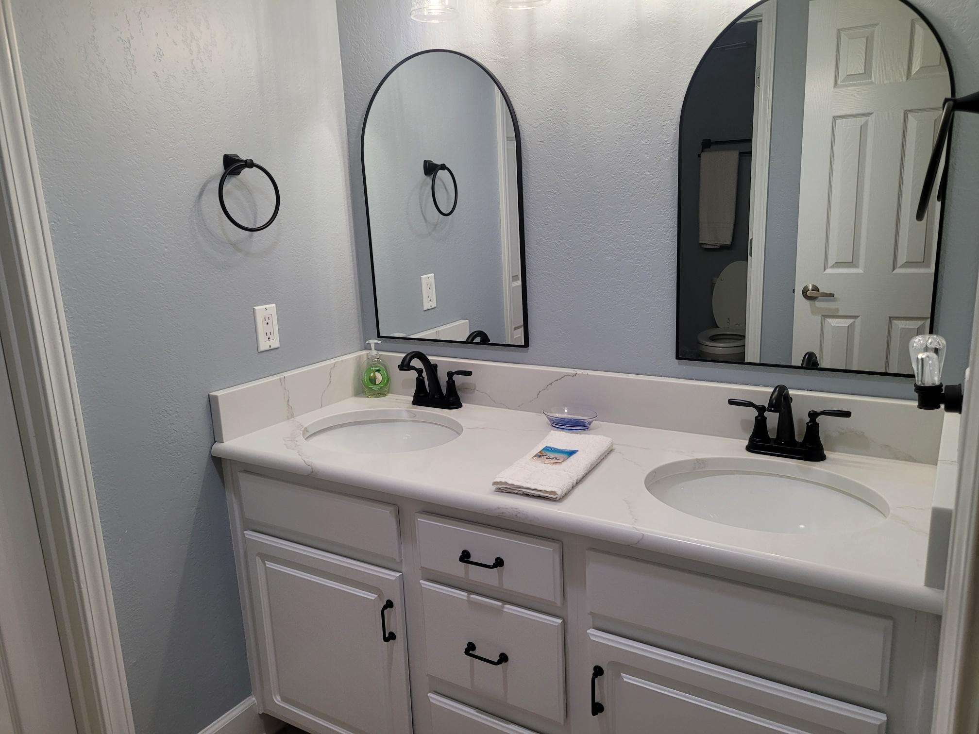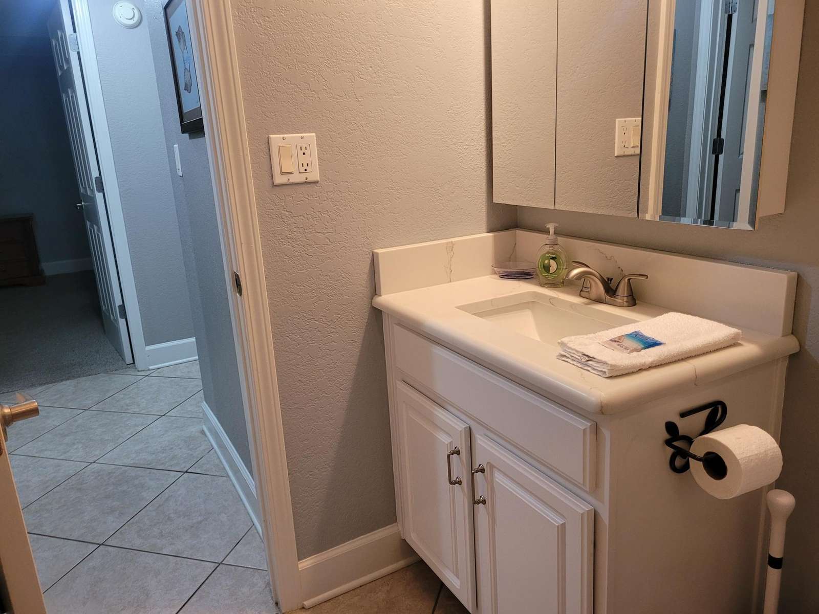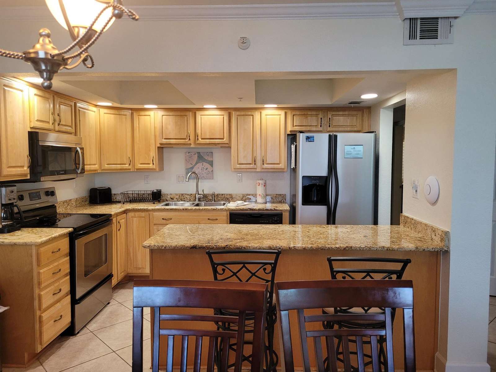 This adorable 2-bedroom 2 bath vacation rental located in the Riverside building. The primary bedroom hosts a king bed and ensuite bath with double vanity and walk in shower while the second bedroom offers a Queen bed with a full bath conveniently located in the hallway. The living room consists of a sleeper sofa and matching loveseat. The large dining room offers plenty of space for family gatherings and offers additional breakfast bar seating. The fully equipped kitchen offers a drip coffee maker, stainless steel appliances and granite counter tops. Family game night? This unit comes with an additional round glass table/chairs, just perfect for cards and board games. Relax with a cocktail while taking in the views of the "Ole River". SeaSpray has 3 refreshing pools, hot tub, kayak rack, lighted tennis/pickleball courts, propane grill house and private boat launch. Need to keep you work out routine on schedule, with traffic-controlled pedestrian walkway, it's just a quick walk across the street to our fully equipped fitness center or spend the day on Perdido Kye's pristine white beaches.